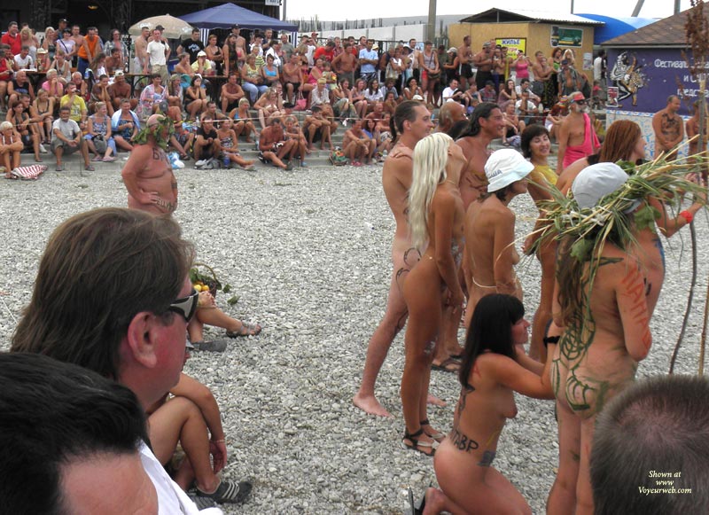 I publish the first part of the Amateur Beauty Contest, which took place on one of the beaches on the Black Sea. Any passer-by could stop and see this event. While a slim blonde posing, trying to win the votes of the audience, her husband sat in three meters away, dressed and enjoyed watching her... It is impossible to show all in just 10 pics, waiting for your votes, the following will be Brunette!)