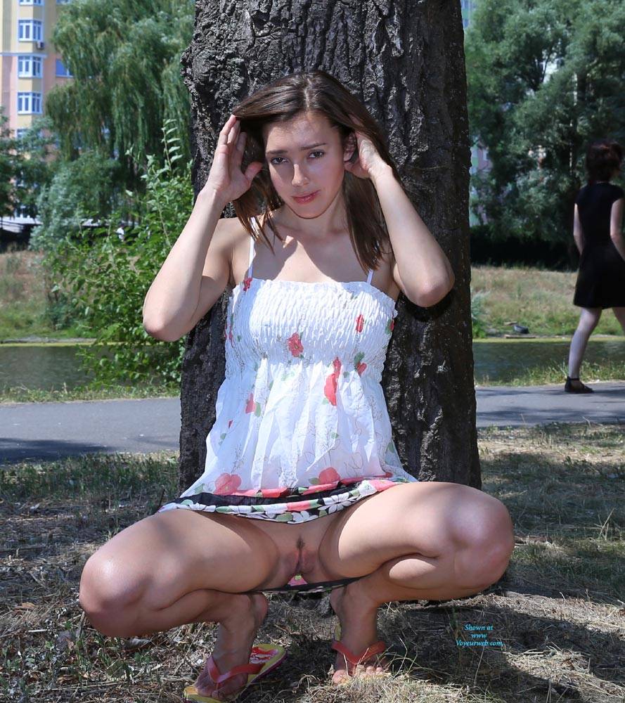 Hi Voyeurweb community! Few last sunny days... even if I'm in a dress that does not mean that there is something underneath, until warm outside! First photo - near our city hotel coming back from the beach, others - in local park. Thanks for watching)))