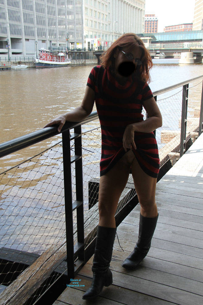 Pantieless Wives Public Exhibitionist Flashing Outdoors Public Place Redhead Amateur