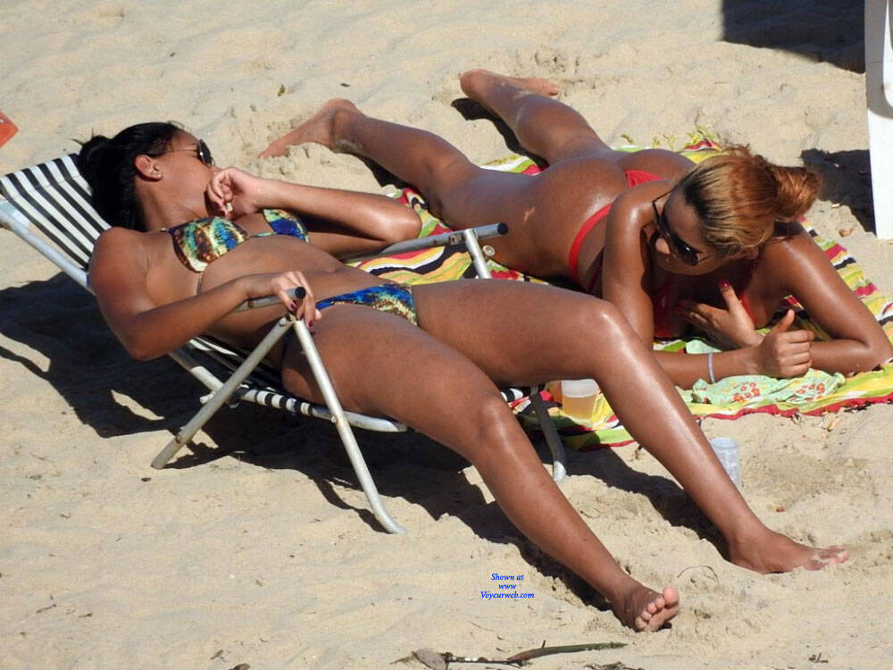 Das amigas ana praia, com seus corpos quentes e suados.