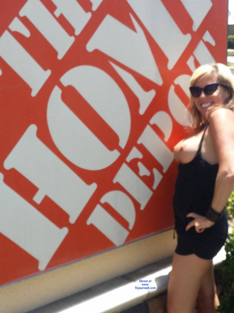 Public Exhibitionist MILF Flashing Blonde Big Tits Public Place