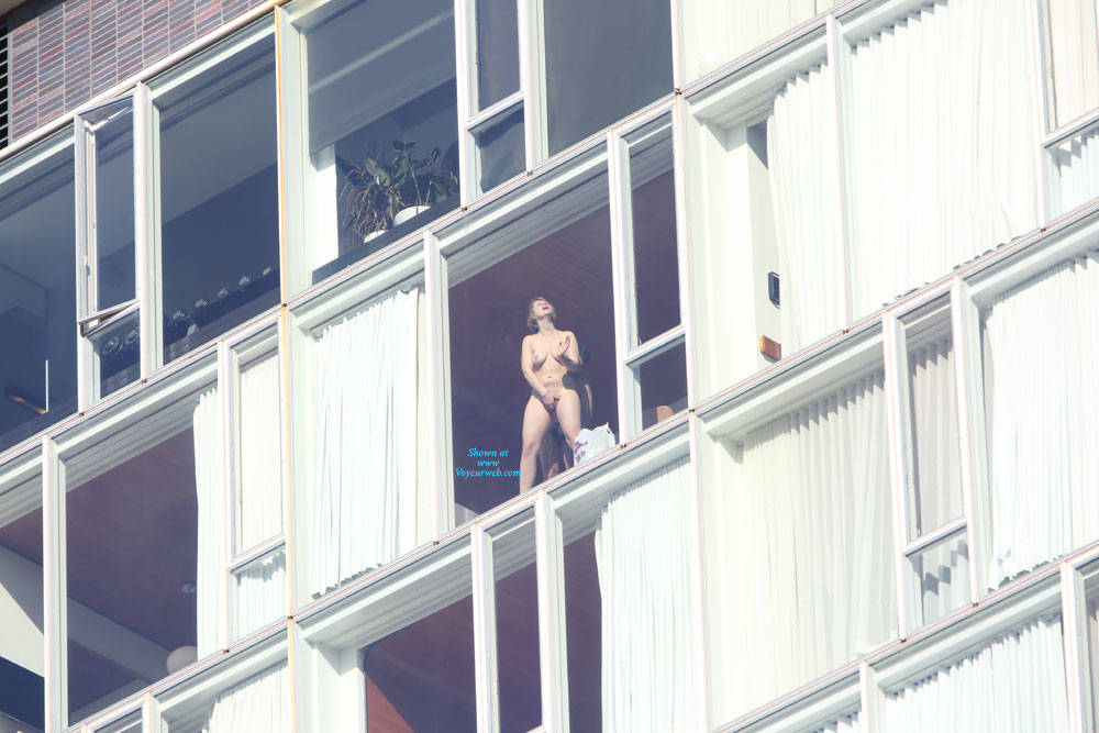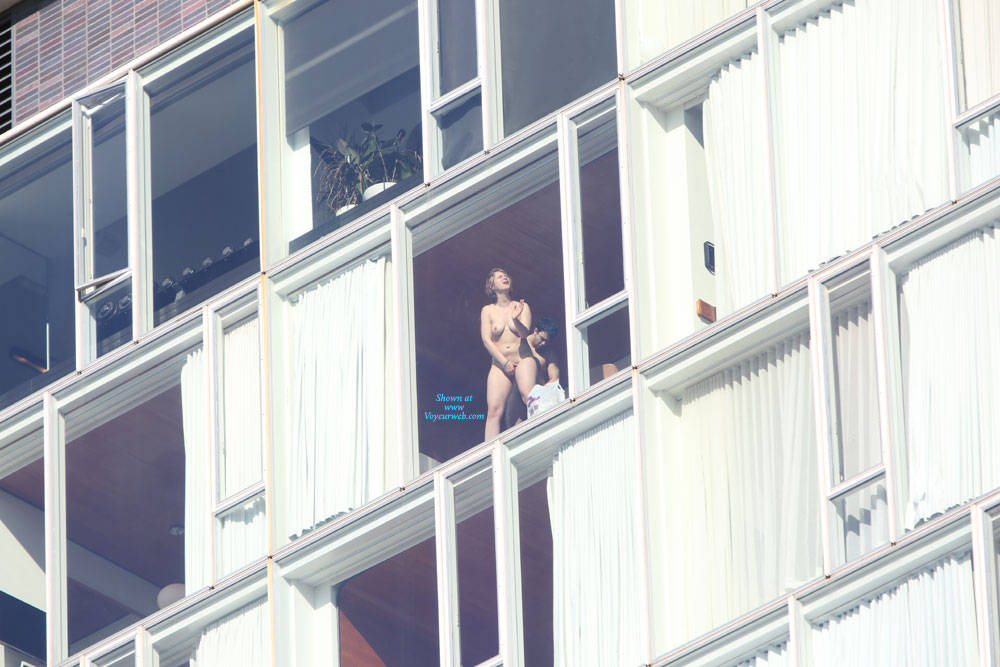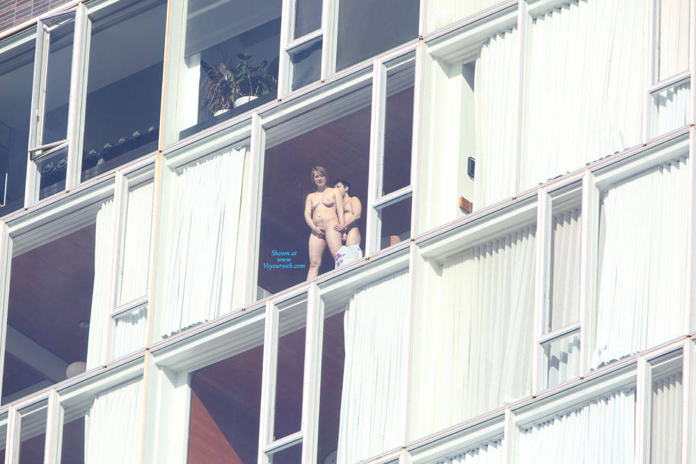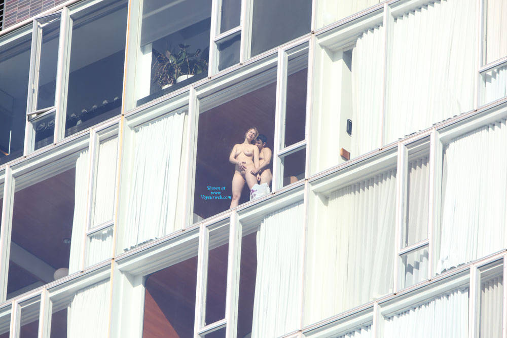 Caught a glimpse of this wild couple having sex in their hotel window in the middle of a Saturday morning. They seemed quite aware of the crowd watching from below.