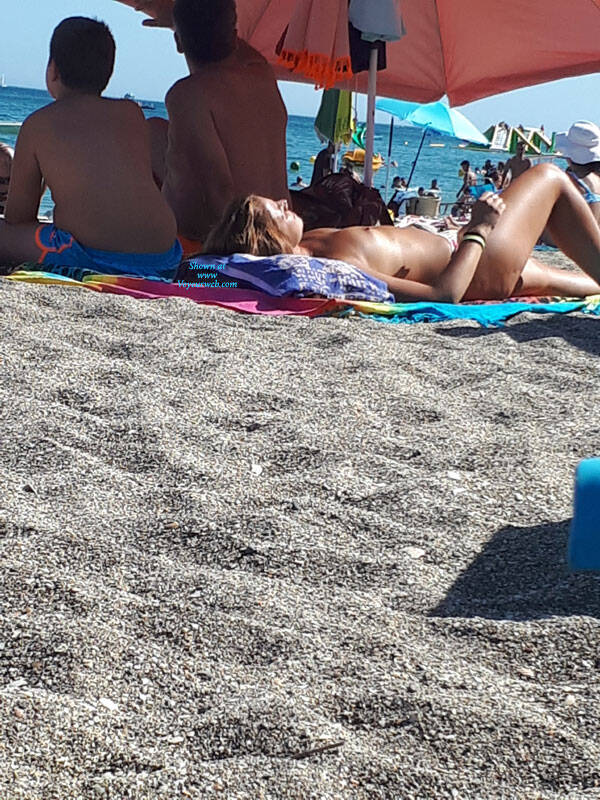 Topless Girls Big Tits Brunette Outdoors Beach Voyeur